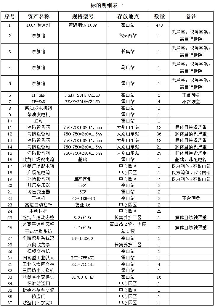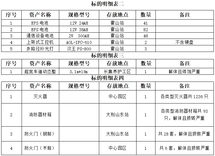 標(biāo)的詳情見中拍平臺所附標(biāo)的明細(xì)表,所附標(biāo)的明細(xì)表上的數(shù)據(jù)及規(guī)格型號等信息僅供參考,以實(shí)物現(xiàn)狀為準(zhǔn),成交后以現(xiàn)場實(shí)物為準(zhǔn)移交。
