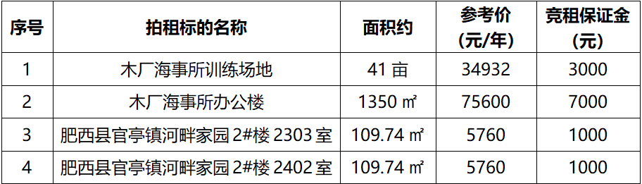一、拍租標(biāo)的:以下場地及房屋3年期租賃經(jīng)營權(quán):